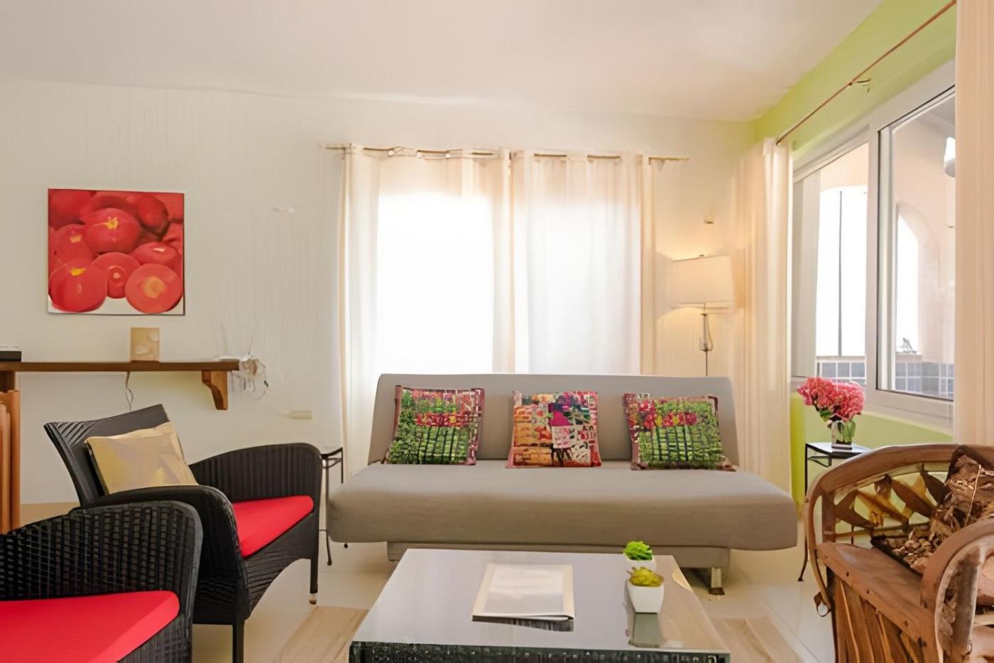 Two-Bedroom Apartment. Guests can make meals in the kitchen that features a stovetop, a refrigerator, kitchenware and an oven. The air-conditioned apartment features a flat-screen TV with cable channels, a private entrance, a coffee machine, a seating area as well as sea views. The unit has 2 beds.