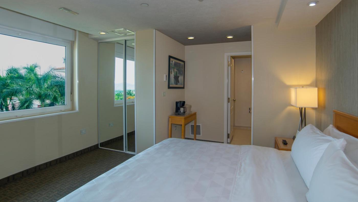 The hotel’s restaurant serves Mexican and international food. There is also a baryou can enjoy a drink in the garden, with views of the fountains.