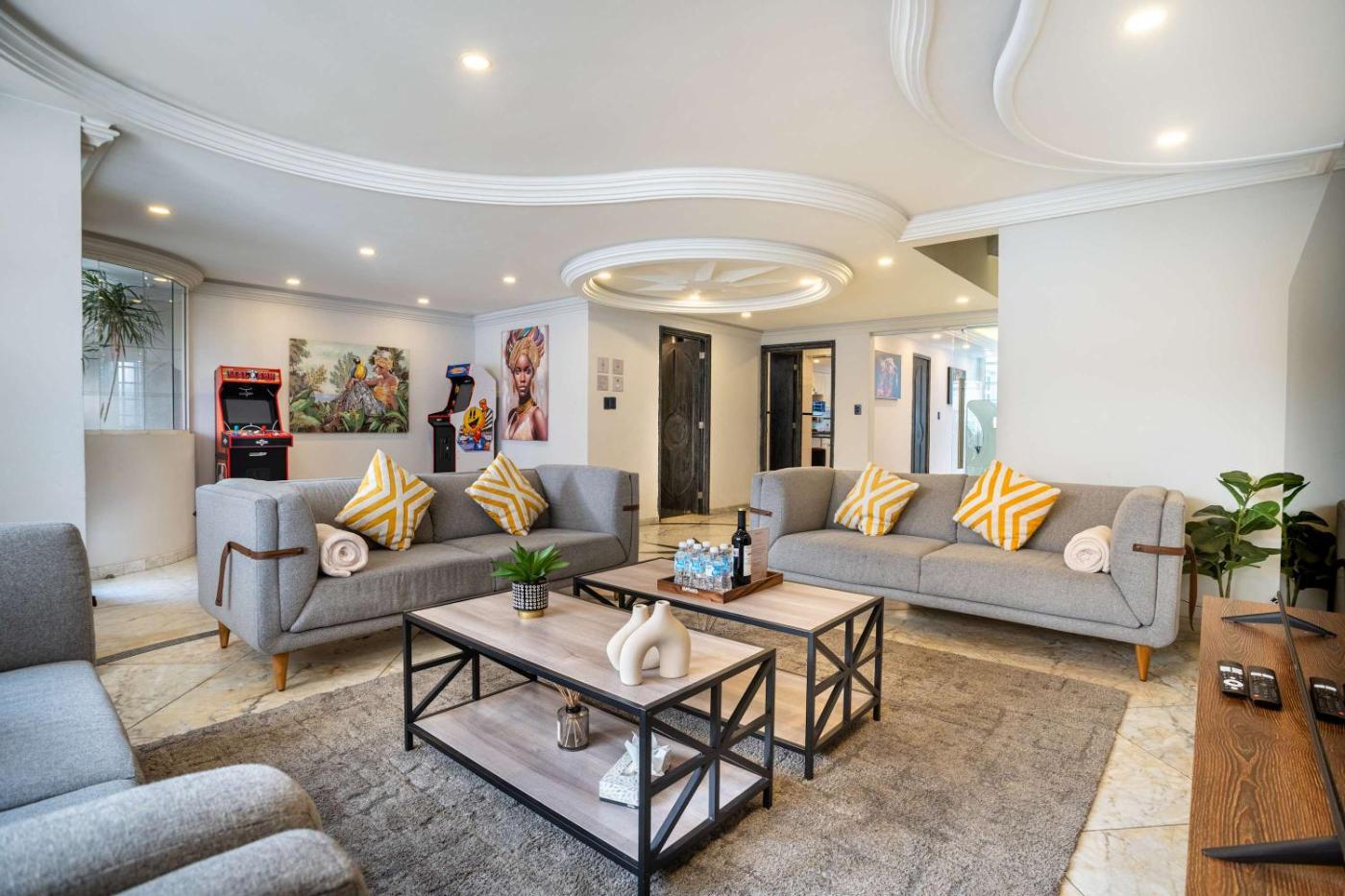 Apartment. The apartment has 7 bedrooms and 5 bathrooms with a hairdryer and free toiletries. Meals can be prepared in the kitchen, which features a stovetop, a refrigerator, kitchenware and an oven. The apartment features a TV, a washing machine, a private entrance, a tea and coffee maker as well as city views. The unit has 10 beds.