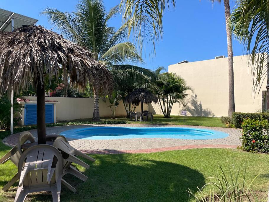 Located in Mezcales, Casa entera en fraccionamiento bahia azul provides accommodation with private pool, free WiFi and free private parking for guests who drive. This holiday home features air-conditioned accommodation with a patio. The property is non-smoking and is situated 1.5 km from Aquaventuras Park.
