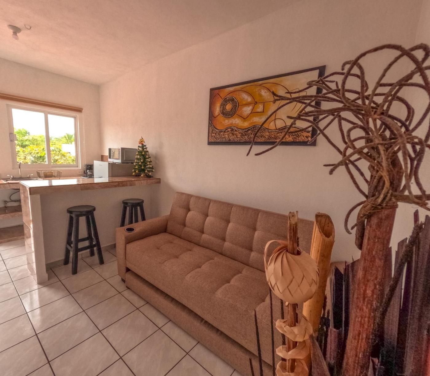 Set in Mezcales in the Nayarit region, Depa Altavela en Bahía, Hospital IMSS 33 muy cerca features a balcony. This apartment is 13 km from Puerto Vallarta International Convention Center. Free WiFi is available throughout the property and Aquaventuras Park is 7.4 km away.
