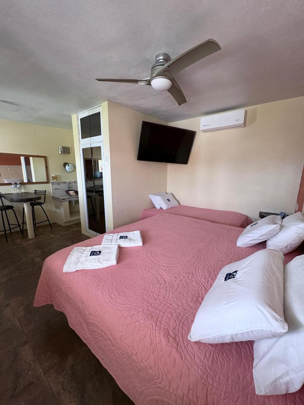 Enjoy our two pools, one of them with ocean views and a light source. Our rooms are family rooms, they have a king bed plus a single bed, they are for two to four occupants. The rooms have climate, ceiling fan, TV with national channels, minibar, hot water and WIFI. In our facilities enjoy the viewpoint to the sea, palapa in front of the pool, restaurant to enjoy local cuisine, large gardens for ball games or meditation, free parking, Temazcal for your relaxation, additional WIFI throughout the hotel. Enjoy the cordiality ofthe staff, we will make you feel at home.