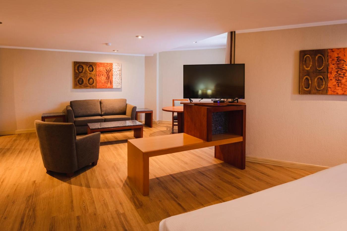 Junior Suite. This suite features 1 living room, 1 separate bedroom and 1 bathroom with a shower and free toiletries. The air-conditioned suite features a flat-screen TV with cable channels, a seating area, a wardrobe, a safe deposit box as well as city views. The unit has 3 beds. ;