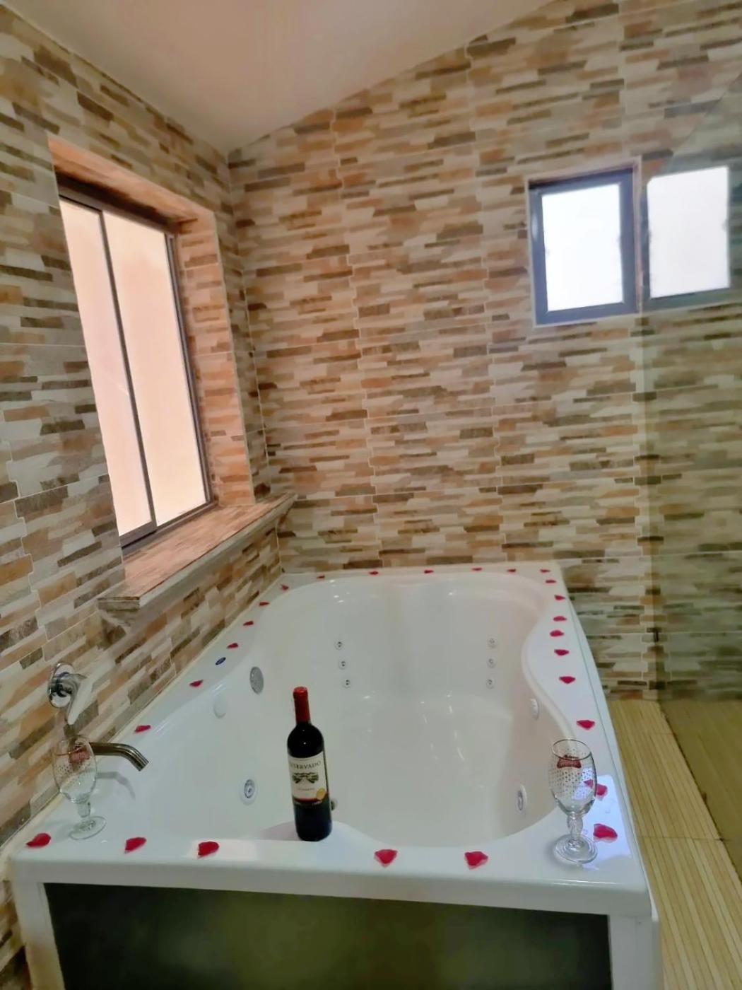 Three-Bedroom House. This holiday homes special feature is the hot tub. The holiday homes kitchen, which features a refrigerator and an oven, is available for cooking and storing food. The holiday home has tiled floors and provides a coffee machine, a dining area and a sofa. The unit offers 3 beds.