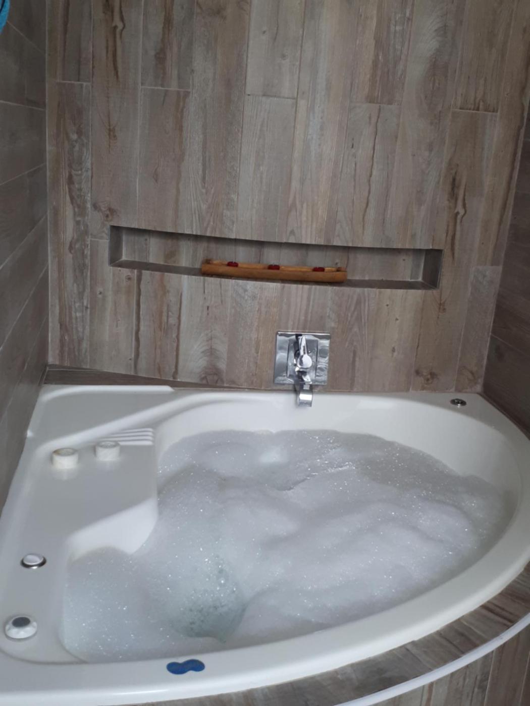 Two-Bedroom House. This holiday homes special features are the hot tub and the fireplace. Featuring 2 bedrooms, this holiday home offers 2 bathrooms with a hairdryer, a seating area and terraceyou can relax. The fully equipped kitchen features a stovetop, a refrigerator and kitchenware. The holiday home provides a flat-screen TV with cable channels, a private entrance, a tea and coffee maker, heating as well as garden views. The unit has 3 beds.